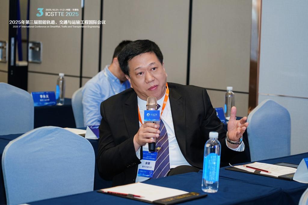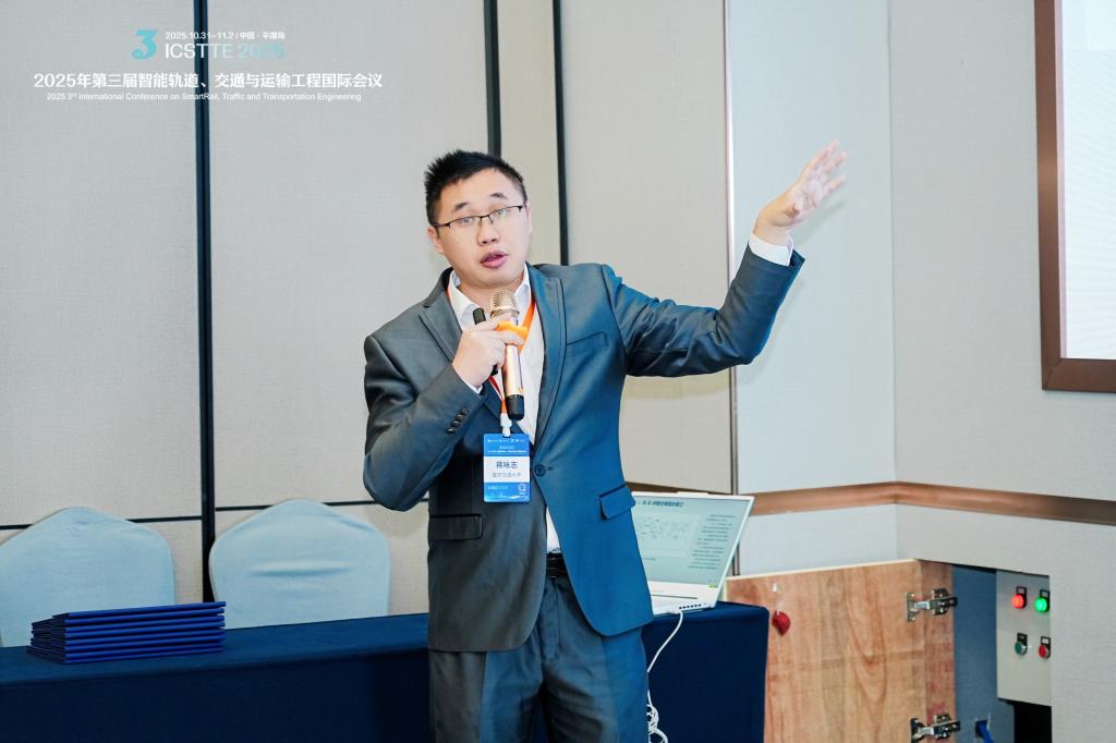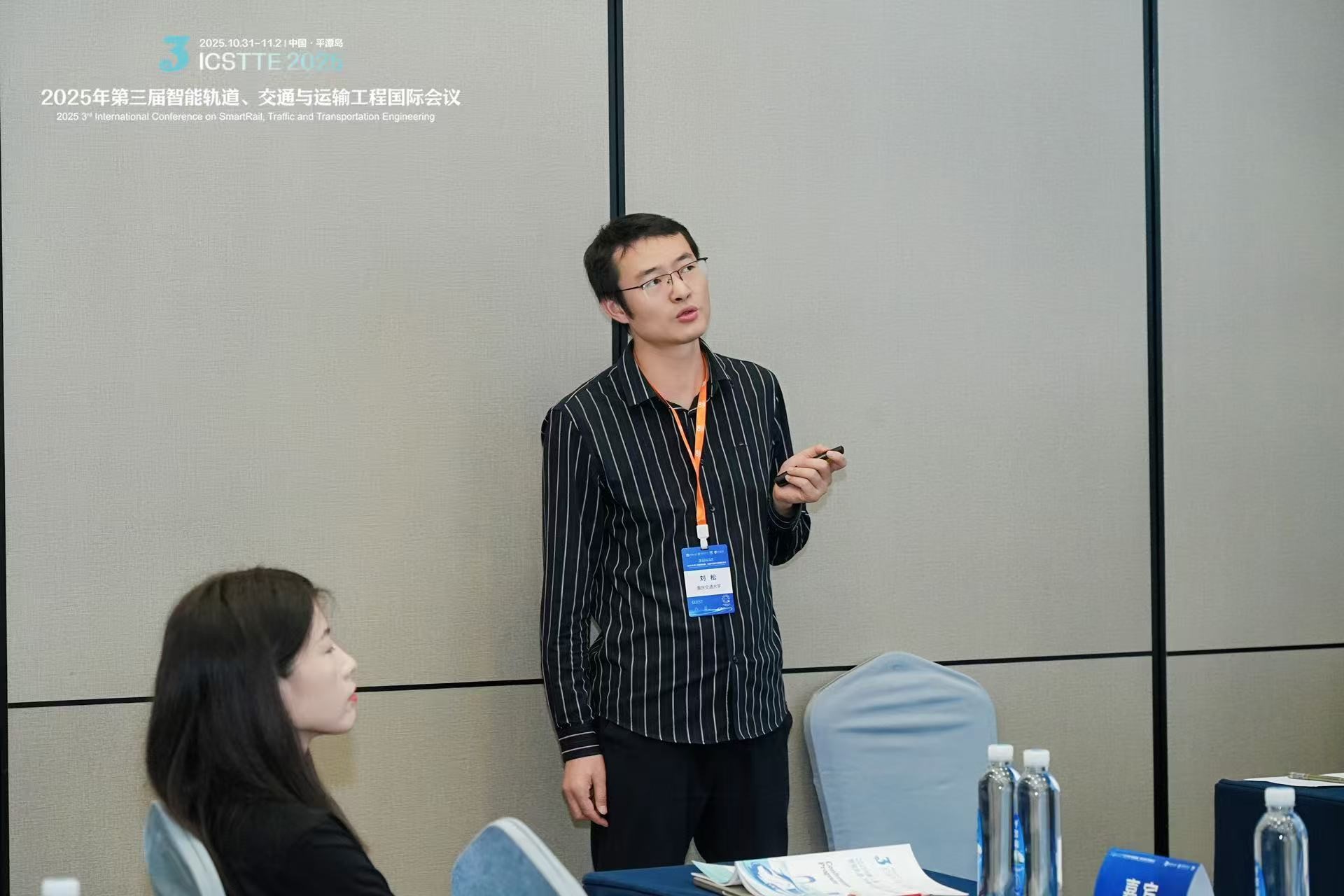 机电与车辆工程学院牵头组织“轨道交通车辆-轨道-桥梁系统结构设计、动力学、强度与控制关键技术”分会场,蒋咏志副教授作“Dynamic response and stability assessment of suspended monorail in cross wind curve condition”特邀报告,深入解析跨风曲线工况下悬挂式单轨的动态响应与稳定性,为轨道交通安全运营提供关键技术参考,引发与会专家的热烈讨论。交通运输学院综合运输系统智能优化研究所副所长刘松博士后受邀在"新一代信息技术驱动的多式联运创新范式"分会场作“Optimization of Reliable Routes for Multimodal Transport of Emergency Supplies Under Dual Uncertainty”特邀报告,针对双重不确定性下应急物资多式联运可靠路径优化问题提出创新解决方案,为多式联运领域技术突破提供新思路。两位青年学者的报告体现了我校以“交通+”为核心的学科交叉特色。