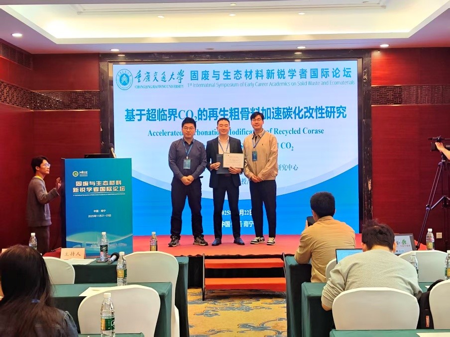 我院港口航道与海岸工程系青年教师吴林键副教授参加了本次论坛。11月21日晚,吴林键副教授受聘为《Materials Reports: Solidwaste and Ecomaterials》期刊第一届青年编委,并参加了该期刊编委会暨第一届青年编委成立大会。11月22日下午,吴林键副教授受邀担任“Construction waste materials”分会场主席,作了题为“基于超临界CO2的再生粗骨料加速碳化改性研究”的学术报告,并与参会专家学者进行了深入交流。