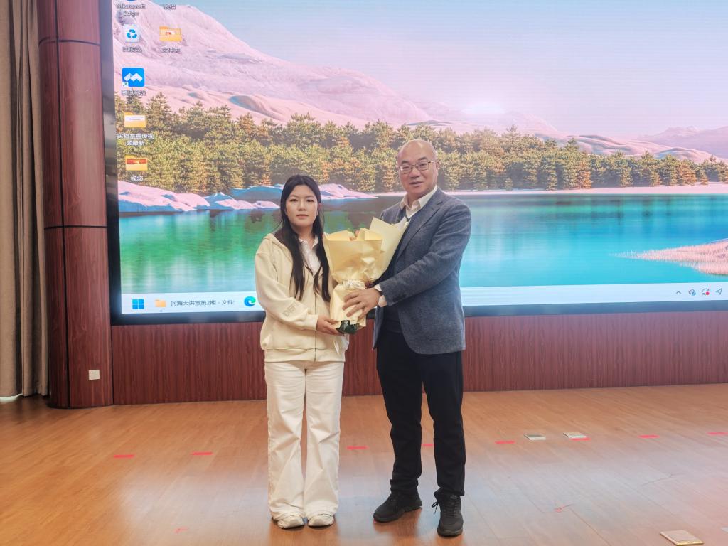讲座结束后,学院学生代表上台向寇军大师敬献鲜花,对寇军大师致以崇高敬意和衷心感谢。