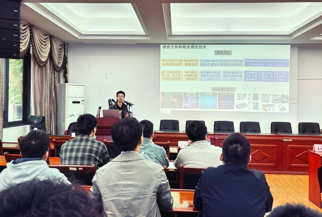 报告伊始,梁越代表学院对潘枭助理教授的到来表示热烈欢迎,简要介绍了学院学科建设、科研发展及人才培养基本情况,并强调了智能建造技术对土木工程领域转型发展的重要意义,鼓励在场师生珍惜此次学习交流机会,深入汲取前沿学术养分。