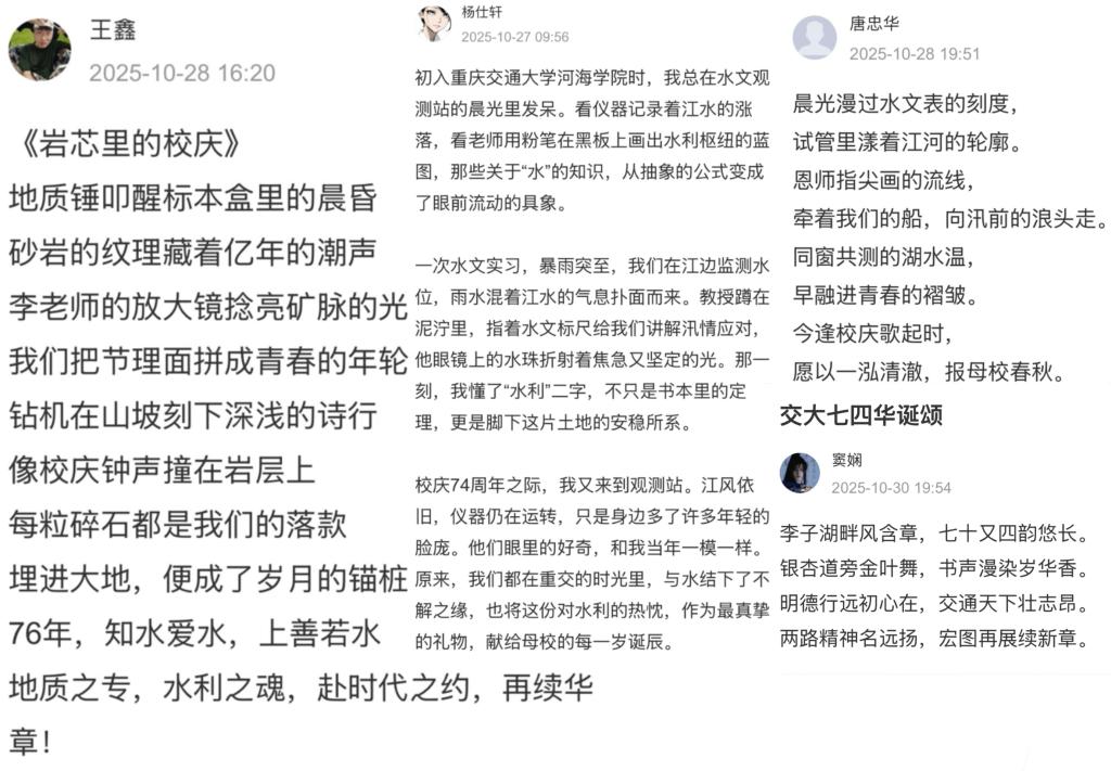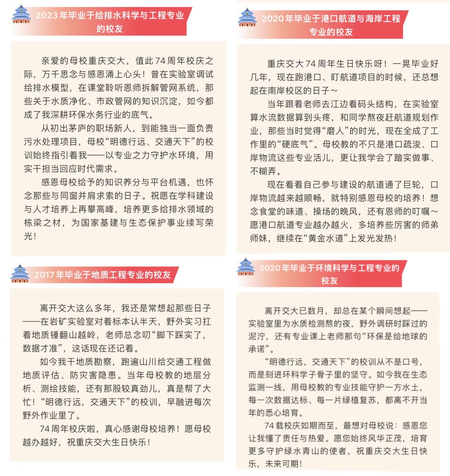 七十四载水润芳华,七十四载河海情深。2025年11月7日,重庆交通大学迎来74周年纪念日,河海学院以"逐浪河海·情系交大"为主题,于10月26日到11月5日开展了校庆周系列活动,共庆华诞,同铸华章!