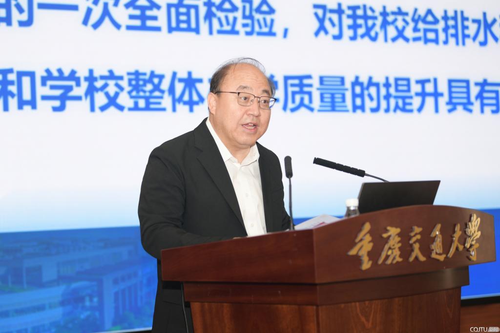 杨胜发副校长代表学校感谢专家组,并表态:学校将立刻启动整改,以工程教育认证理念优化人才培养体系,强化教学和毕业设计管理,统筹资源升级实验室条件和加强师资队伍建设,借评估推动给排水专业及全校学科建设水平整体提升。