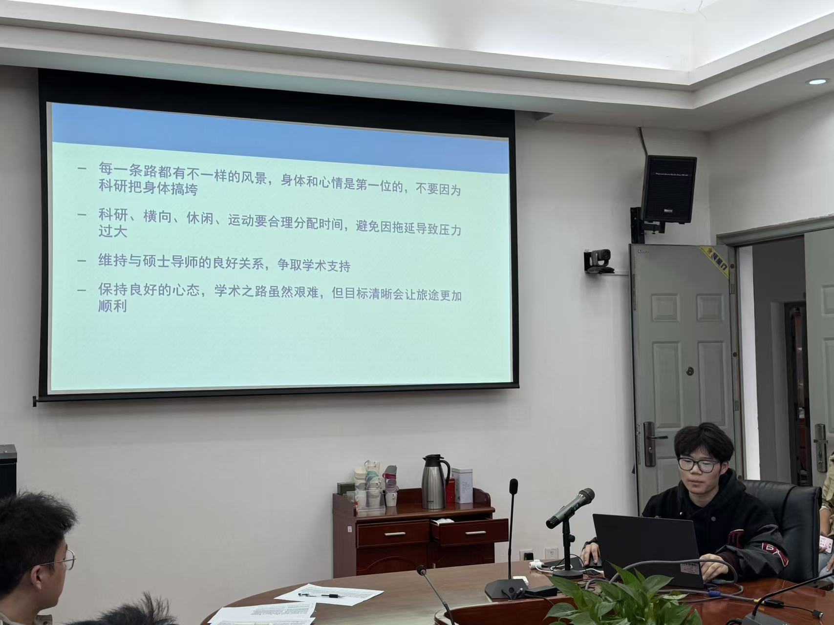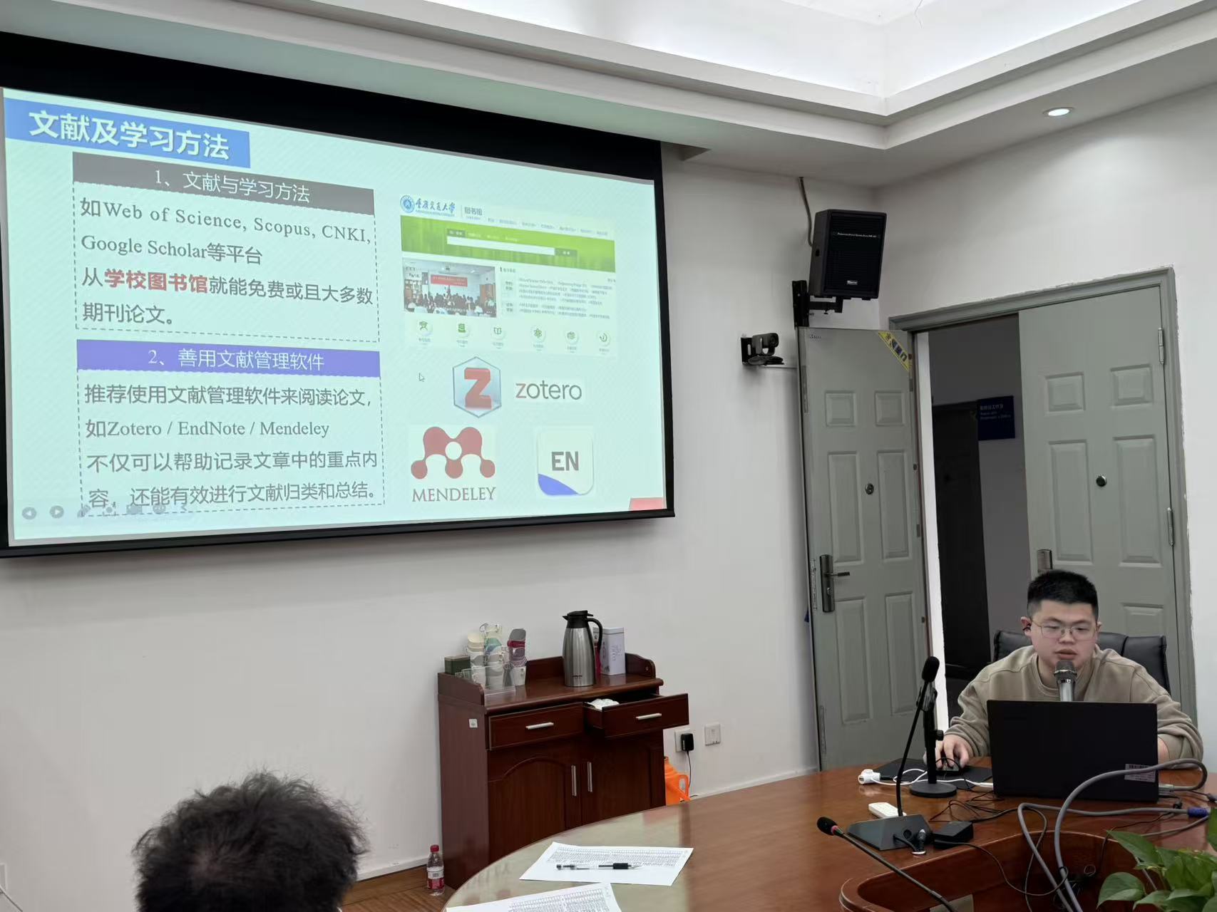 2023级水利硕士研究生、国家奖学金获得者陈洲超,从如何选题、文献与学习方法、研究方法与实验和时间管理与工具四个角度出发,仔细讲解了自己的论文从无到有的过程,提醒同学们一定要多与导师沟通和拥有保持记录的习惯。