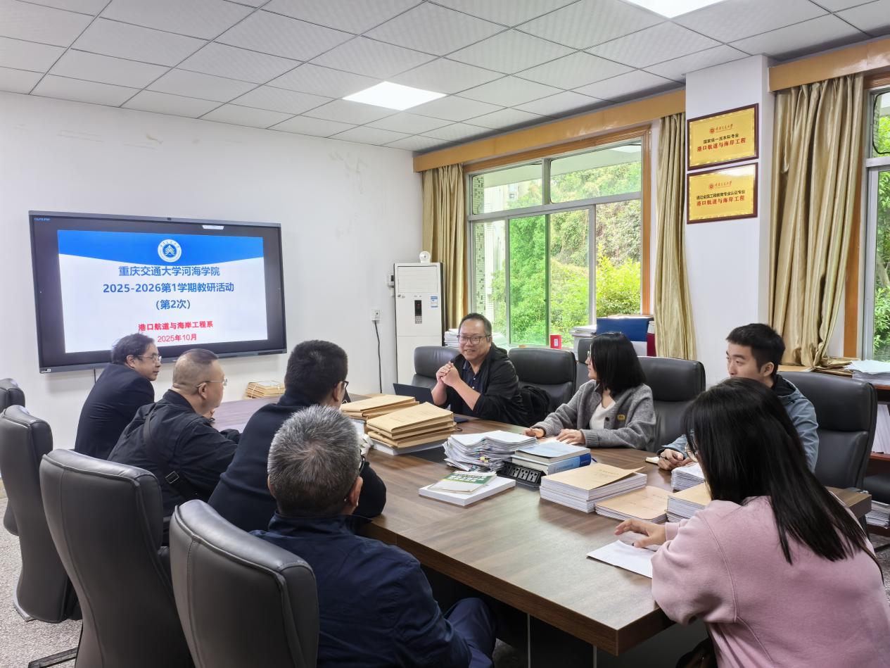 2025年10月24日,重庆交通大学河海学院港口航道与海岸工程系举办2025-2026学年第一学期第二次教研活动,全体教师参会,围绕2026版培养方案修订、毕业实习与毕业设计推进等核心任务深入研讨。