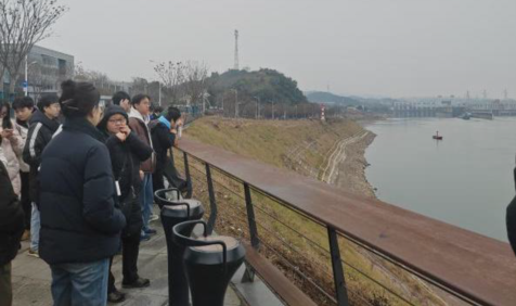 接着,师生前往紫阳大江纱帽山观景台。该河段作为汉江汇入长江前的重要部分,具有江面狭窄、水流湍急、汛期流量变化大等特点,与葛洲坝库区的水文情势形成鲜明对比。大家结合地形特征,分析该段在防洪与水资源利用上面临的挑战,增强了对流域综合治理的理解。
