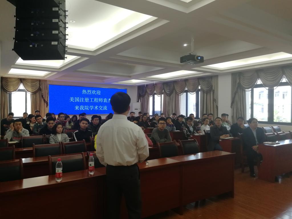 3月18日,美国注册工程师袁杰应邀来到我校作了题为“管控港口工程大体积混凝土质量风险”的学术报告。河海学院王多银院长主持了会议,全校近百余名师生认真聆听了报告会。