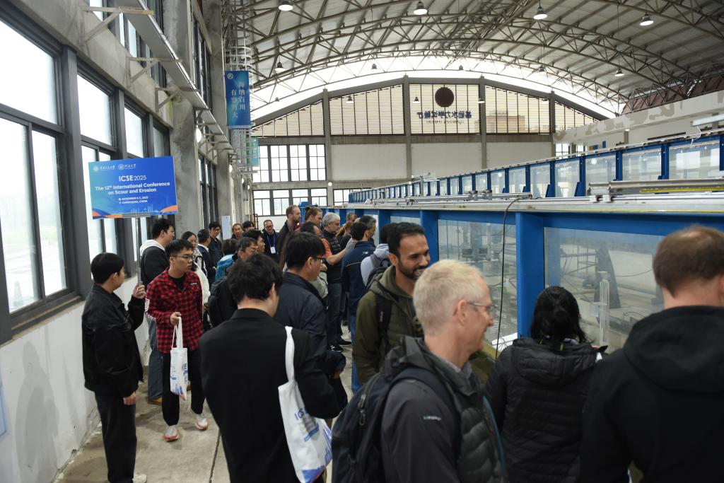 会议期间,与会专家学者还赴重庆交通大学科学城校区水利工程试验基地、重庆航运建设发展(集团)有限公司嘉陵江草街航电枢纽工程开展了技术考察活动。在重庆交通大学科学城校区水利工程试验基地,与会代表详细观摩了重庆交通大学承担的长江、平陆运河、西江、澜沧江、引江济淮等国家重大工程的模型试验情况,并就泥沙淤积与清水冲刷、航运开发与生态保护等热点问题进行了深入交流。在嘉陵江草街航电枢纽工程,与会代表详细了解了该枢纽在航运、发电、拦沙减淤、灌溉、防洪、提升城市品质等方面的效益和作用,实地调研嘉陵江在侵蚀防护、生态修复等方面的成效。通过现场观摩、技术交流与问题研讨,专家们将学术理论与工程实践深度结合,为后续学术研究与技术创新积累了宝贵的实践案例。