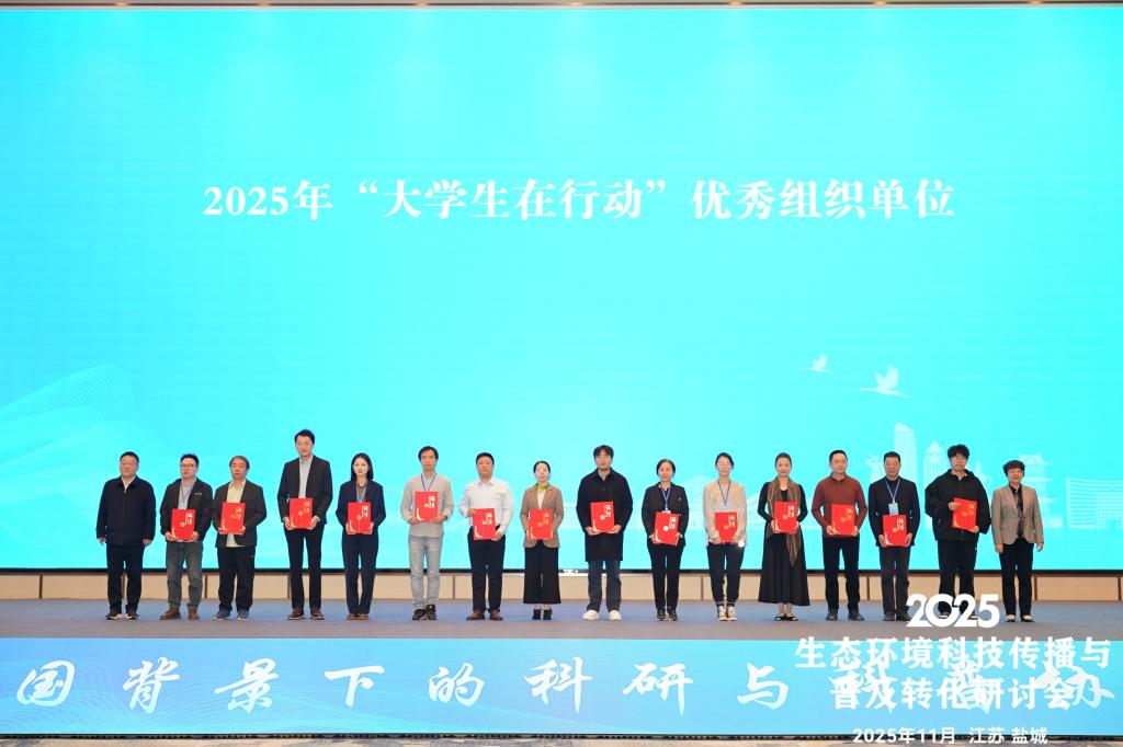 研讨会安排了开幕式暨特邀主旨报告、分会场、科普基地现场教学等内容。会议公布了2025年度生态环境科技成果科普化典型案例和优秀科普作品、2024年度生态环境精品研学课程和线路及2025年“大学生在行动”评议结果。重庆交通大学在2025年“大学生在行动”生态环境科普活动中表现突出,杨延梅教授代表我校作为全国3所受邀参加“大学生在行动”颁奖环节的高校之一上台领奖。