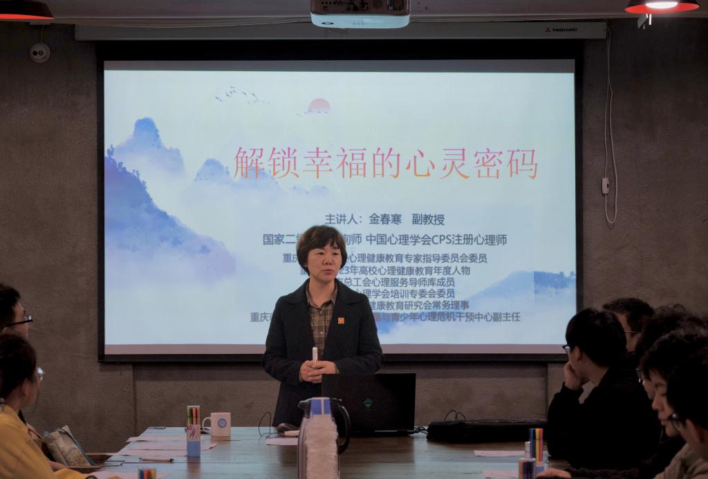 11月6日,科学城校区“两路先锋”一站式学生社区服务大厅暖意融融,“先锋润心,与‘理’同行——青年学生党群关系和谐共进实践探索”团体辅导活动正在此开展。本次活动由重庆交通大学“交小菁”功能型党支部和“君君有你”辅导员名师工作室联合举办,国家二级心理咨询师金春寒副教授主讲,河海学院20余名学生代表与辅导员齐聚一堂,在互动体验中解锁幸福的心灵密码。