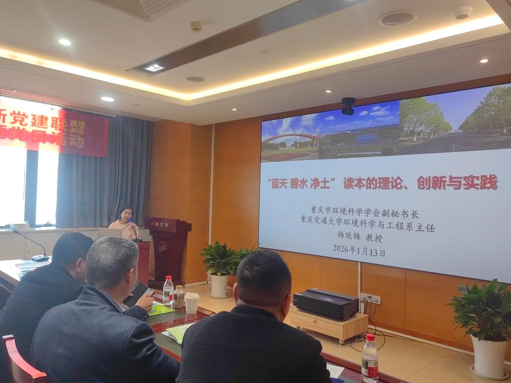 为深入学习贯彻习近平新时代中国特色社会主义思想,加强生态文明宣讲,强化大学生作为生态文明建设主力军的责任担当,促进“水战略与绿色协同创新”党建联盟单位之间的交流、协作与共同发展,2026年1月13日下午,重庆交通大学河海学院党委联合重庆市环境科学学会、招商局生态环保科技有限公司、重庆市生态环境科学研究院开展“水战略与绿色协同创新”党建联盟“蓝天 碧水 净土”主题党日活动。