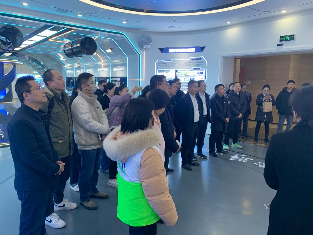 首先,重庆交通大学河海学院党委书记叶四桥带领环境给排教工党支部的教师党员与学生代表、重庆市生态环境科学研究院支撑支部书记李振亮和支部党员、重庆市环境科学学会秘书长方俊华和学会办公室工作人员在招商局生态环保科技有限公司总工陈克军、行政第三支部书记李广辉和其他党员同志的共同陪同下走进招商交科科技展馆。馆内一张张珍贵的历史照片、一个个硬核的技术模型,生动展现了招商局集团作为百年央企的责任担当与招商交科在交通科技、生态环保领域的卓越成就;从港珠澳大桥海底隧道的技术支撑到桥梁智能检测机器人系统的创新应用,从低碳低扰精准管养技术到智慧监测平台的广泛覆盖,让大家近距离、更深层次地了解交通科技与产业创新融合发展的现代交通科技企业的情况,深刻感受到科技创新为生态保护与交通发展带来的强大动力,也对“绿水青山就是金山银山”的发展理念有了更直观认识。