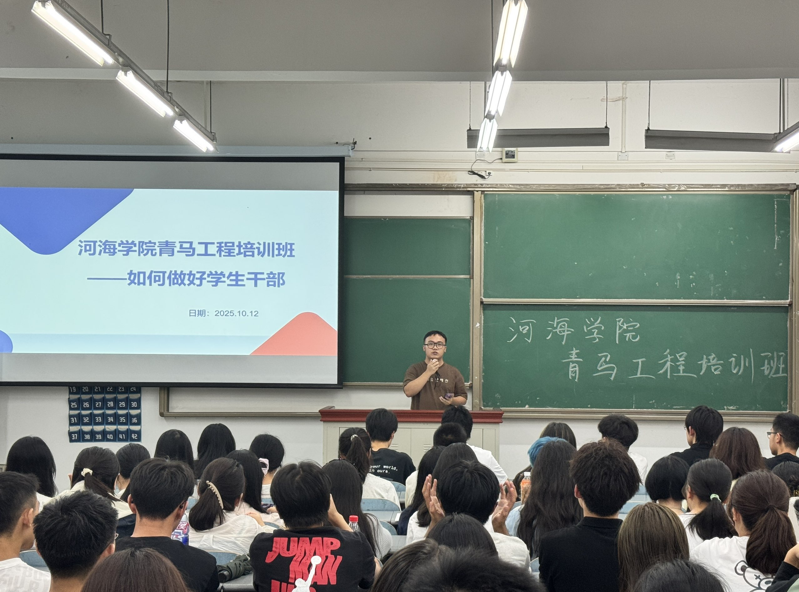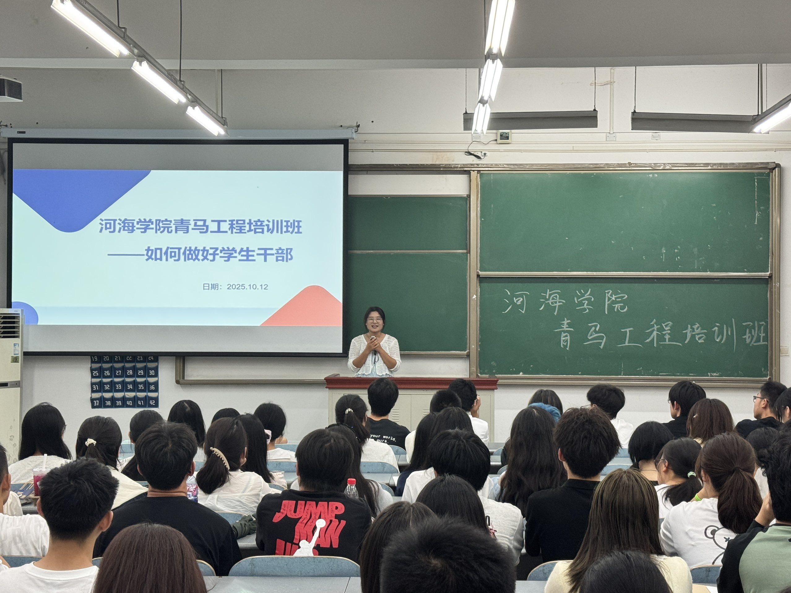 为提升我院学生会干部的综合素养、服务意识与履职能力,进一步加强组织凝聚力与战斗力,10月12日晚7点,河海学院在科学城校区A01教学楼125教室举办青马工程培训班。本次培训班由辛悦老师担任班主任,学生会各部门干部共同组织,全体新晋干事参与学习。