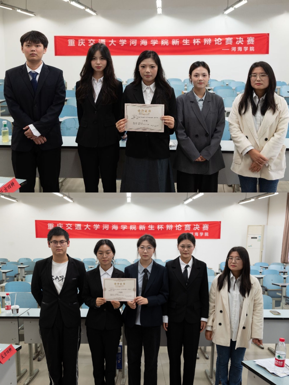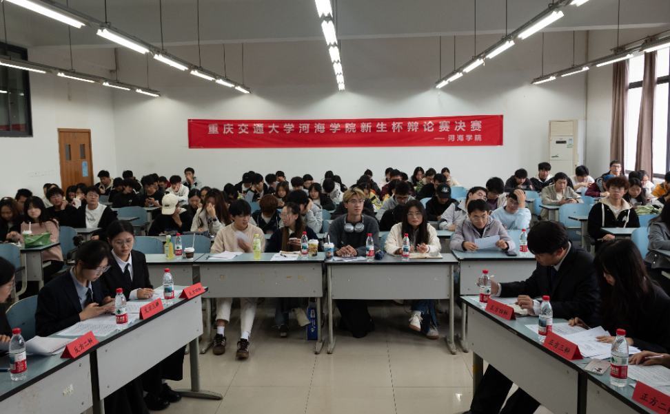 为提升学生的团队协作、逻辑思维与临场应变能力,河海学院举办了2025级“新生杯”辩论赛。经过前期激烈角逐,最终两支队伍会师决赛,在重庆交通大学科学城校区A01 335教室展开冠军争夺。本次比赛邀请学生评委以及教师辛悦、冯柏瑞担任评审,双方围绕“人的成长更体现在接纳自己还是改变自己”的话题展开了激烈交锋。