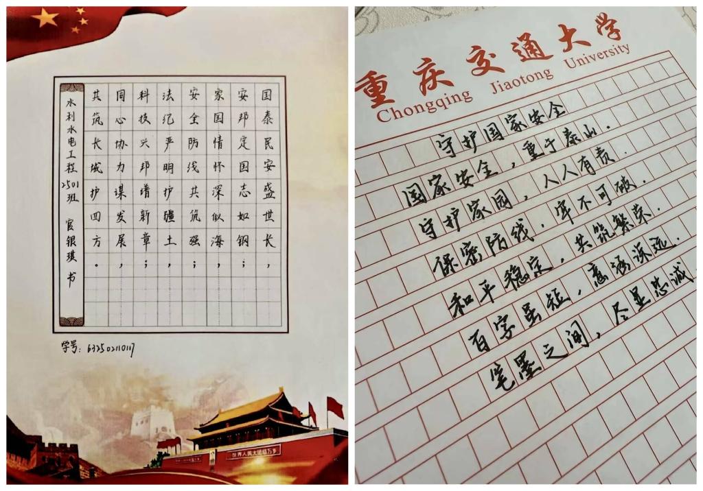组织学生创作形式多样的国家安全主题宣传作品,同学们踊跃参与,通过书法、诗歌、征文等多种艺术形式表达对国家安全的理解与支持,用笔墨传递“守护国家安全,人人有责”的理念,充分展现了河海学子对国家安全的深刻认知和坚定守护之心。