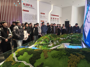 随后,师生来到藻渡水库智慧水利工程展厅进行参观学习。在政治、经济、社会、生态、文化“五维意义”展示墙前,同学们系统领会了工程的战略定位与综合价值;借助智慧沙盘系统,直观了解了水库的流域布局与输水网络,对“完善水网、防洪防汛”的核心功能有了更清晰的把握;通过技术人员系统演示,同学们进一步认识了数字孪生、智能碾压、智能建造等智慧水利新技术,感受到信息化在现代化水利工程中的重要作用。